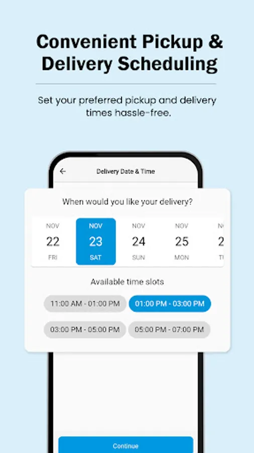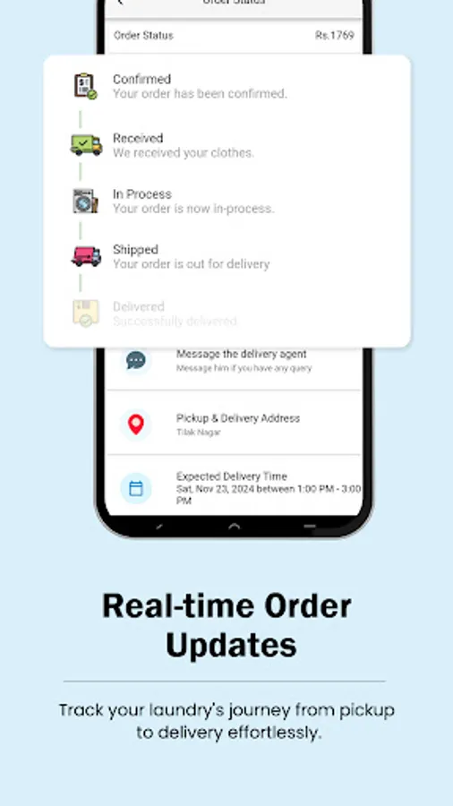 Schedule pickups at your convenience and enjoy delivery in as little as 24 hours. Stay updated with real-time notifications for every step. Download now for hassle-free laundry!