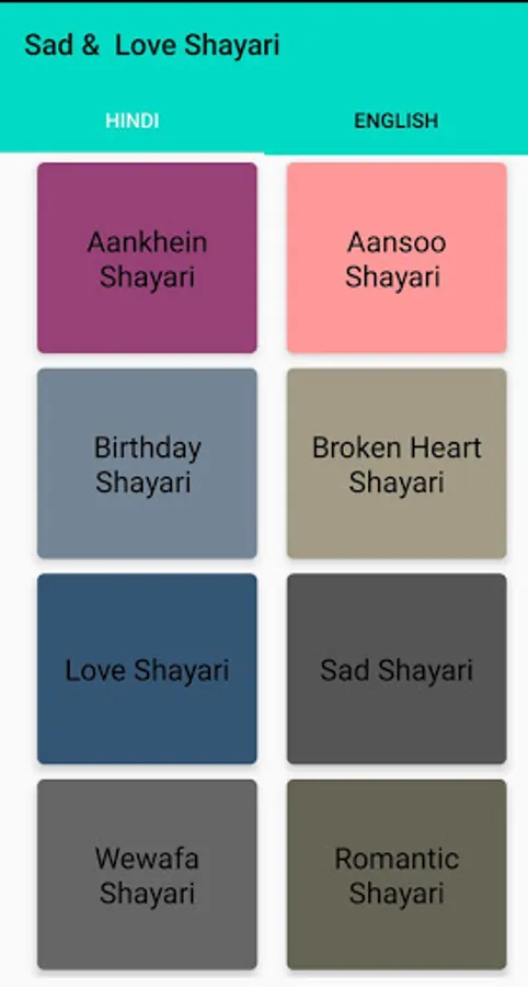 Over 1000000+ hindi and english shayari in over 60+ Category to choose Shayari, quotes and sms! The best collection of shayari in Hindi available in app. Now choose from over 60 Category of shayari that will touch your heart.