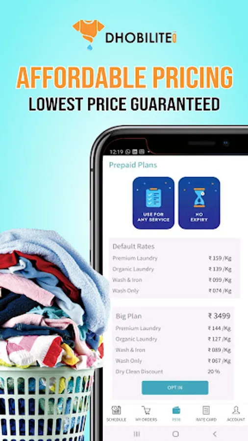 Explore the DhobiLite "Prepaid" plan for exclusive discounts tailored to your laundry, dry cleaning, washing, and spotting needs.