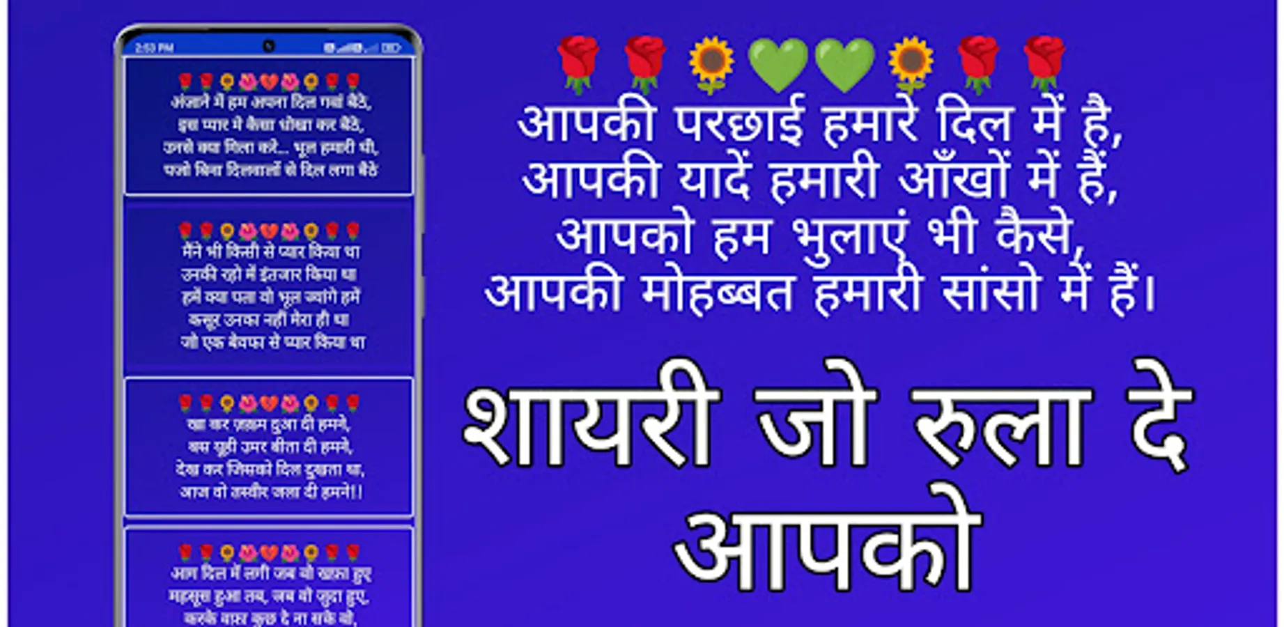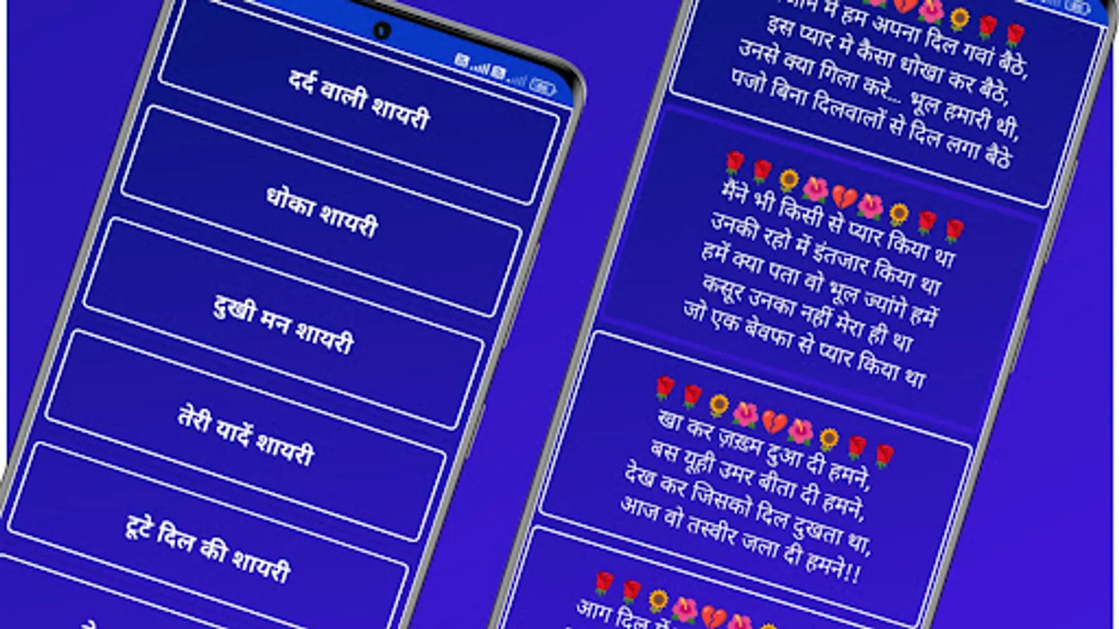 Sad Shayari is a mobile application that provides a wide variety of emotional and heart-touching shayaris for those who want to express their feelings of sadness, loneliness, and heartbreak.