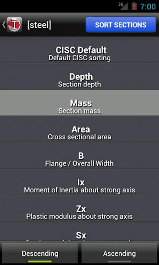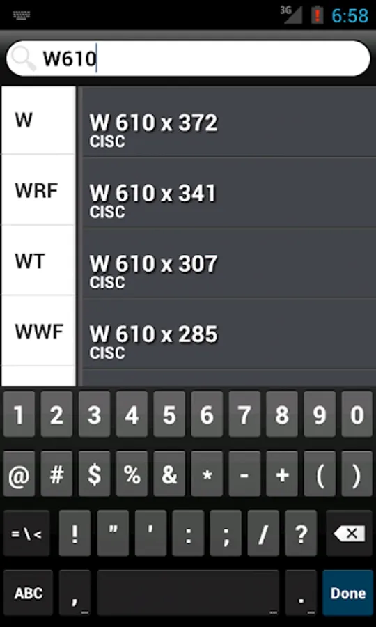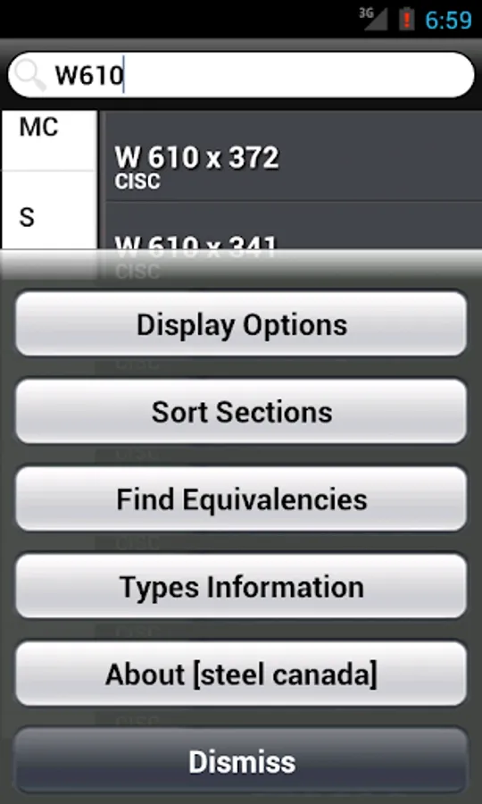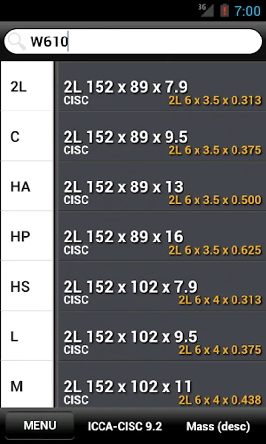 ** FLEXIBLE SEARCH lets you find a section faster, reducing typing and switching between the numeric and alphanumeric keyboard on the iPhone. Instead of entering "L 1.75 x 1.75 x 0.250" (which does work as well) you can simply input "L1.751.750.25"