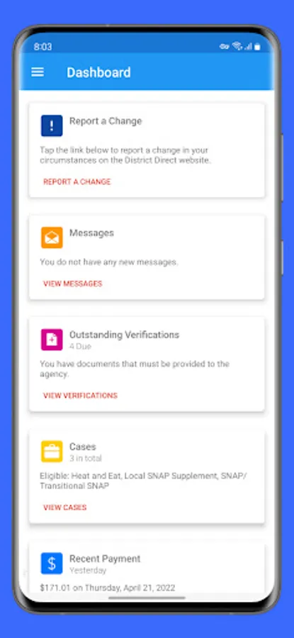 District Direct (formerly District First) provides a convenient way for District Residents to apply for and manage food, cash, and medical benefits available in the District of Columbia. No more waiting in lines or on hold! District Direct allows you to securely access your benefits anytime, anywhere.