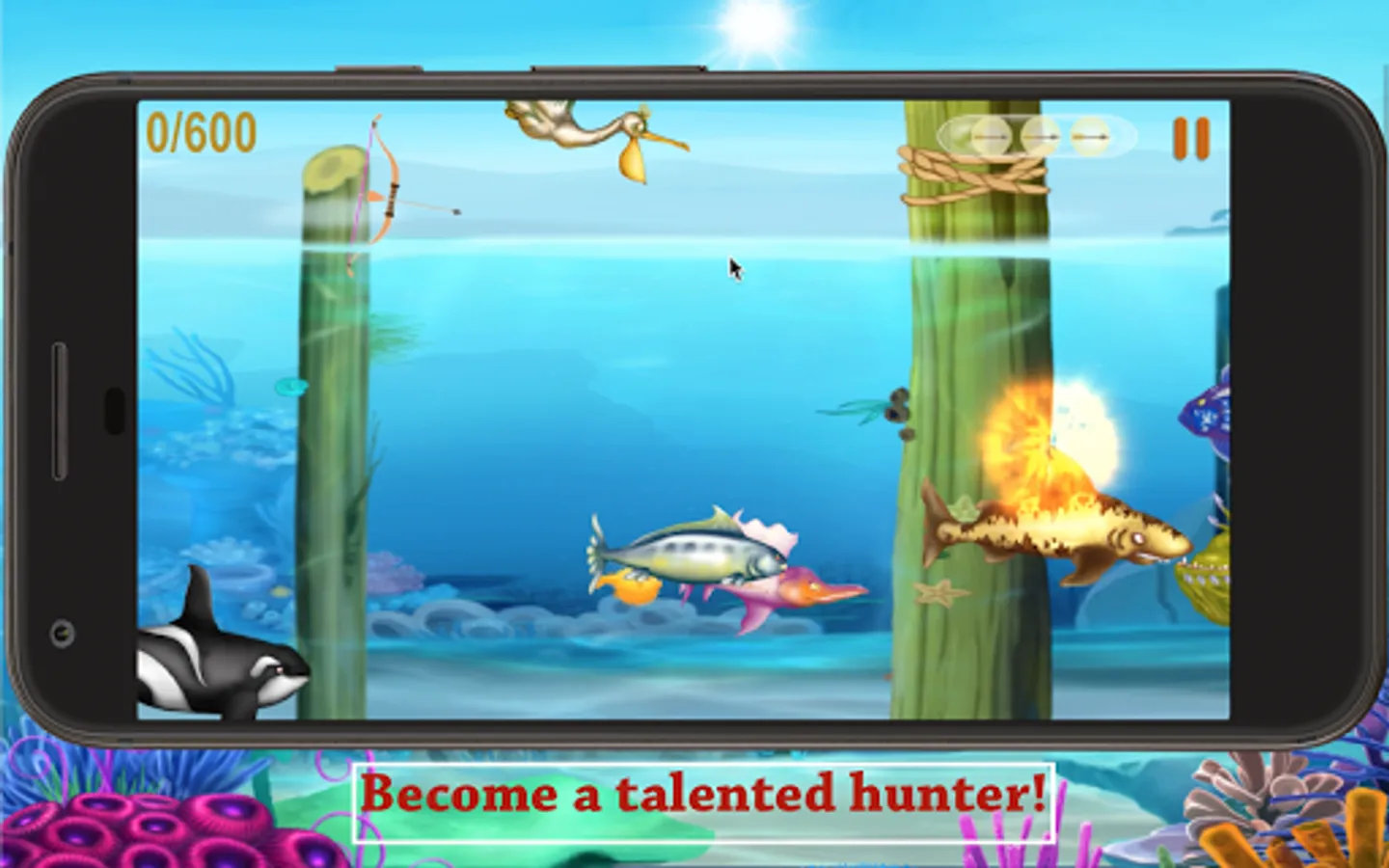 You just shooting fish in ocean and pass level use archerys to shoot fish.