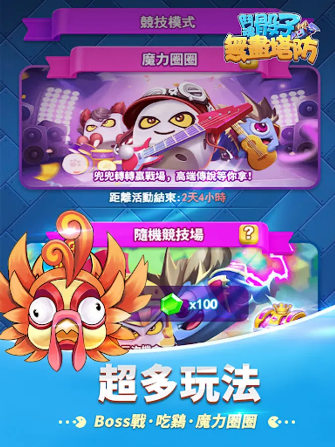 You can play against players in real time, using your own combination and a little luck, so that the opponent can't defend against monster invasion. Thousands of people eat chicken, four-player competition, random competition, world boss and other unique gameplays are waiting for you to experience. Join forces with your friends to resist the enemy waves!