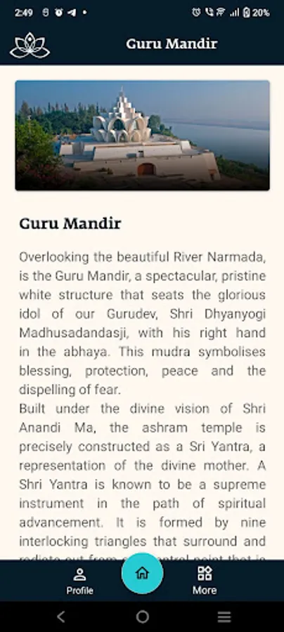 - Know more About Ashram Campus including Dhyani Smruti Mandir, Sadhna Rooms, Hall and More..