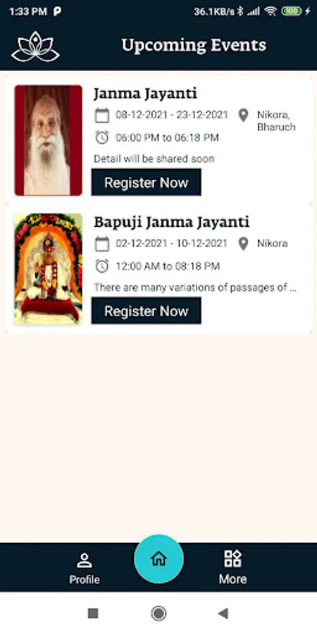 - Online Registration of the Events and Spiritual Workshops.