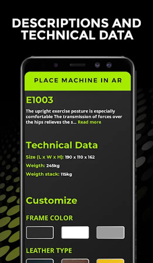 Simply tap on the equipment of your choice and find out more through the product description, as well as the specifications of the technical data.
