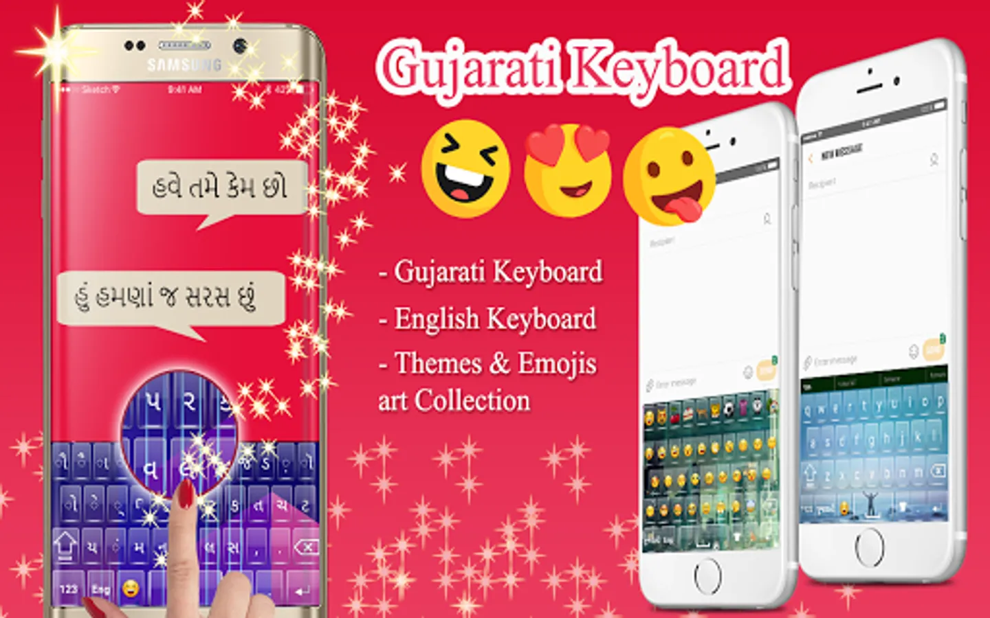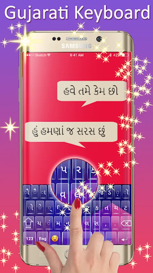 A Gujarati keyboard is the best and easy typing keyboard app that you will see in the play store. Gujarati English keyboard app is specially designed for those people who love to write in both Gujarati as well as in the English Language. You can easily change your language from Gujarati to English by pressing only one smart button. This Gujarati keyboard has both numeric and alphabetical rows for soft and fast typing. Many eye-catching and colorful themes are available for you in new Gujarati keyboard.
