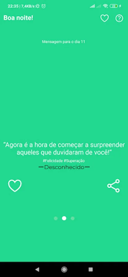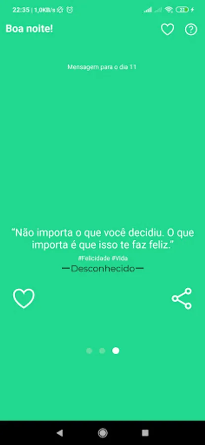 Application with motivational phrases and other topics to make your day happier. The app has the basic idea to share phrases of happiness, peace, joy and others.