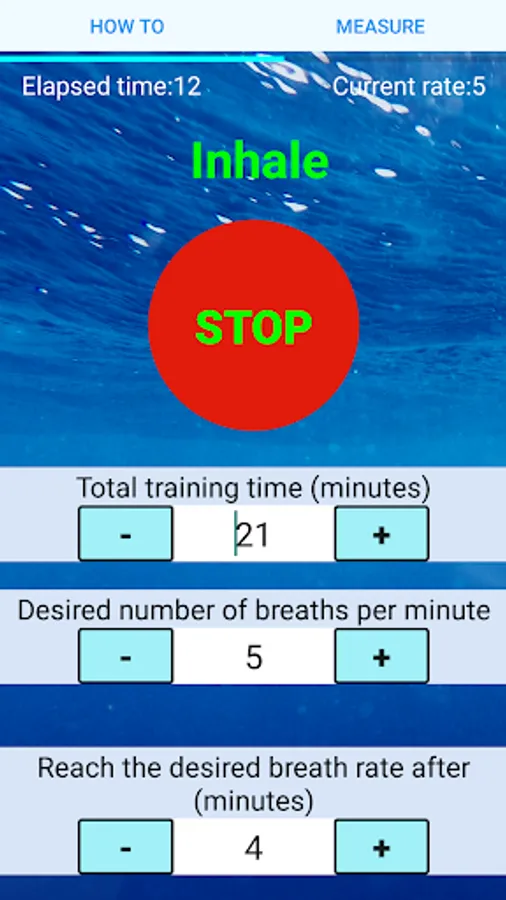 3- Then choose the period of time to reach the target, the app will start with your regular breathing rate, and increase it gradually to reach your desired rate after this period of time, then the app will continue with the same breathing rate till the end of the total period you specified in step 2.