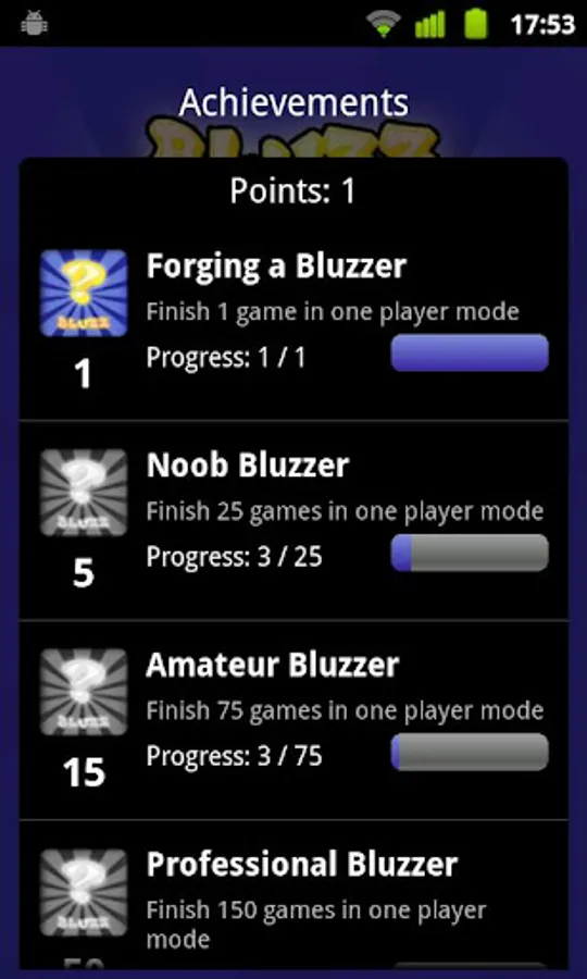 Bluzz Trivial Minds is the quiz game where you can challenge people from all over the world in a ladder system game (ELO) or play in one player mode with ranked score.