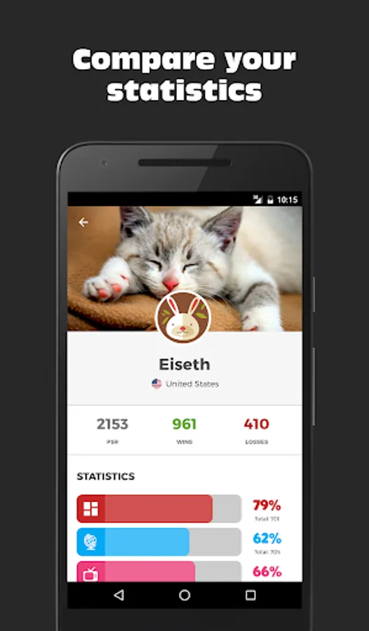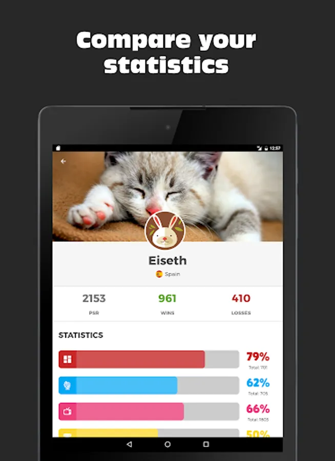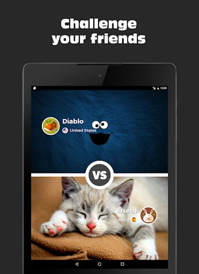 Challenge your opponents in a quick duel game. Answer an amount of questions that will be equal for both players where the winner will be the one that guesses more right. Also available themed challenges.