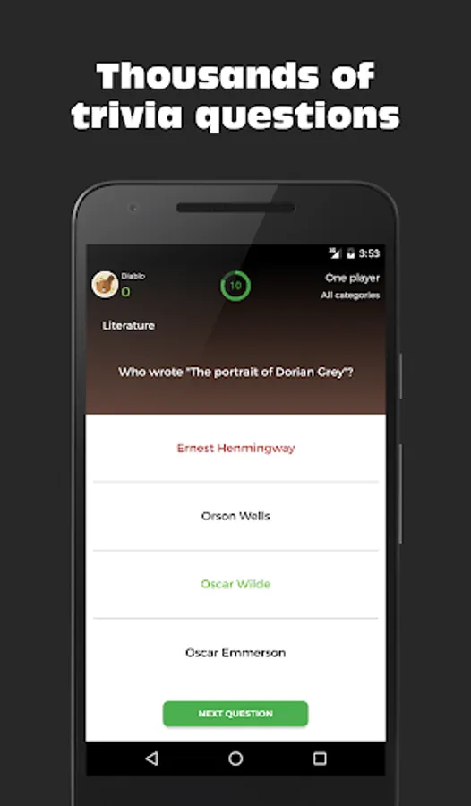 - Contributes to the game by sending your questions and valuing the community. The questions are then checked for correctness and quality.