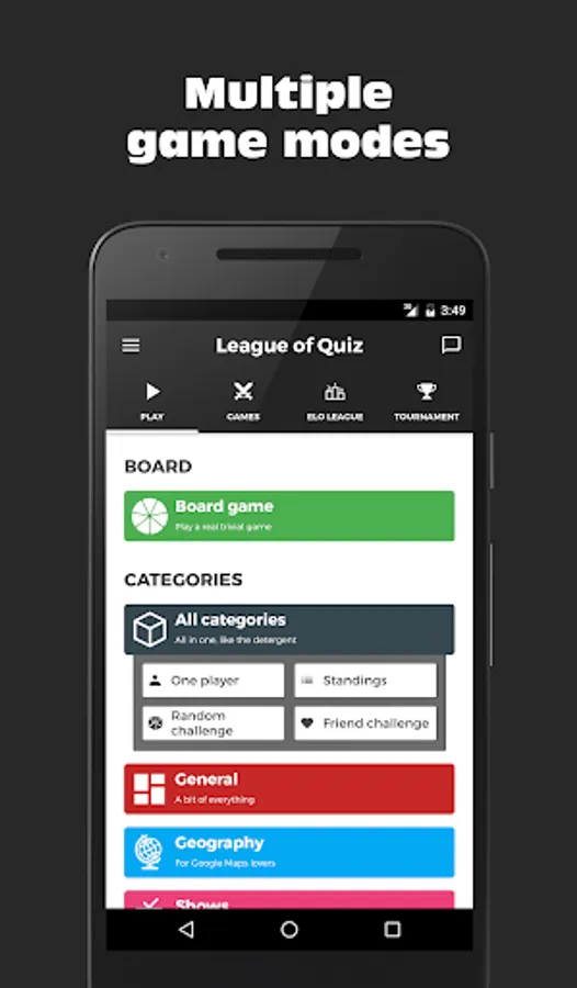 League of Quiz is a free trivia quiz game with multiple game modes and tournaments. Challenge your friends in board trivial pursuit games or in duels competing in the ELO League. Also you can play friendly games or in one player mode with rankings.