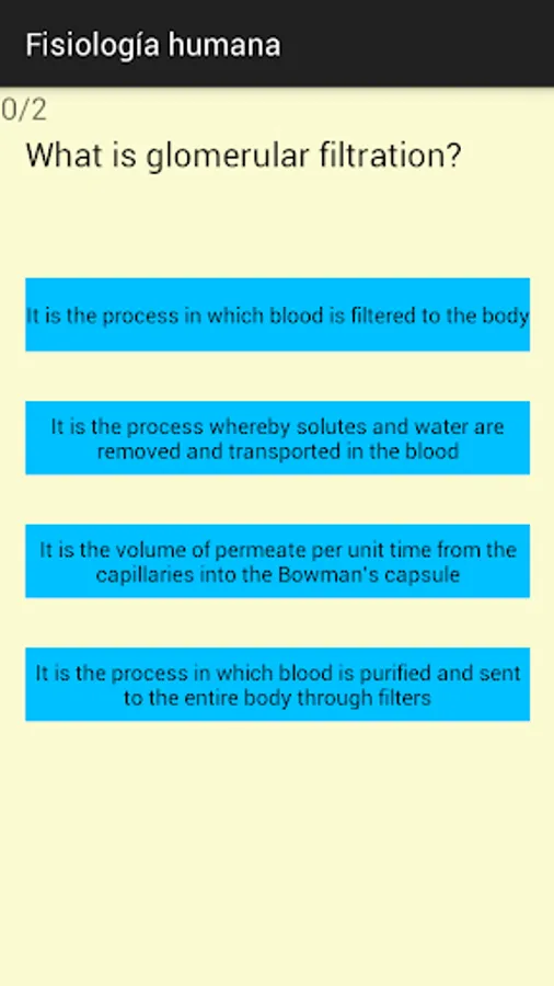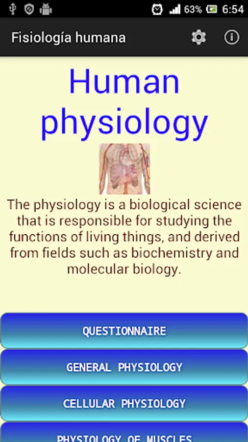 Learn physiology with brief explanations of several subjects, practice your knowledge with the questionaire