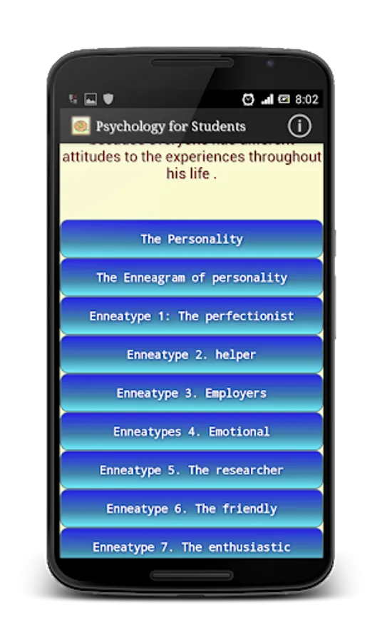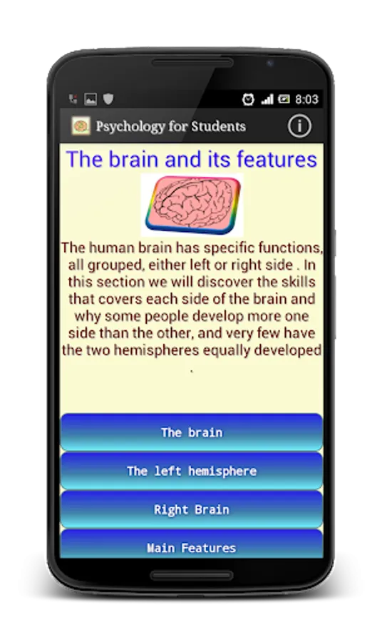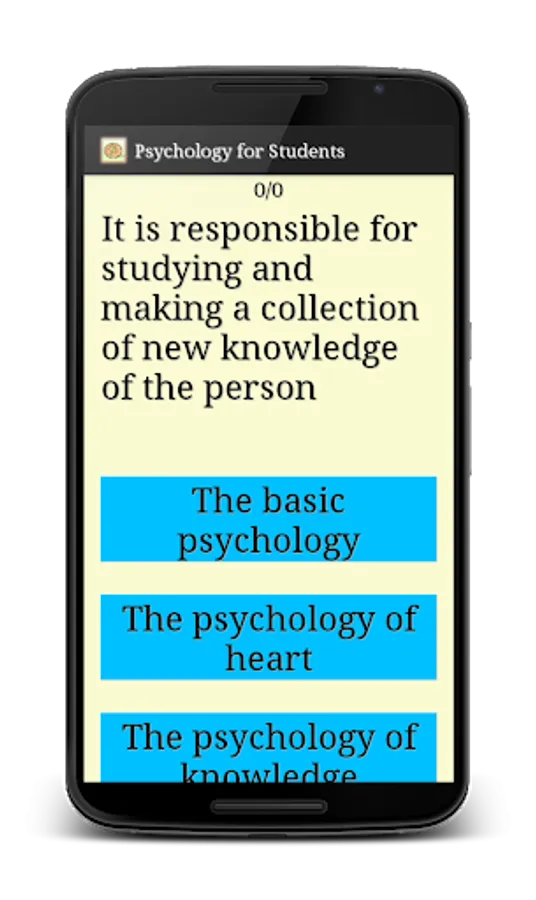Find concepts and details of Psychology, Ideal for students. Practice your knowledge with a quiz. Do your homework by sharing the concepts by email or social networks. A course of psychology for beginners
