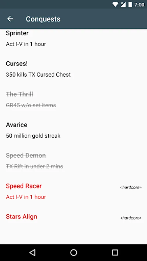 - View all conquests to complete as part of the journey