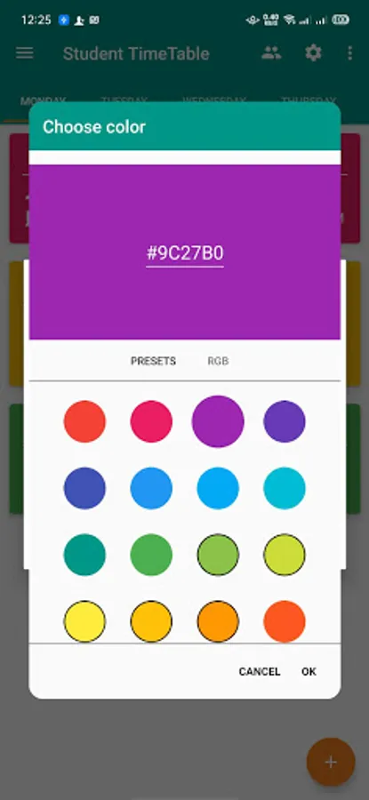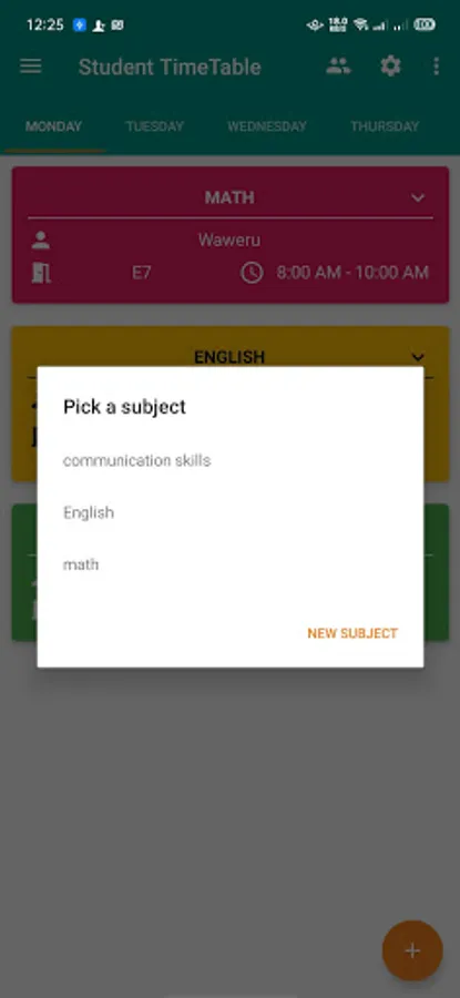 - This app allows you to create, edit, delete new subjects with a nice feature to add colors to your timetable.