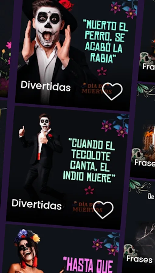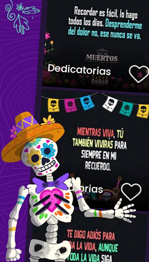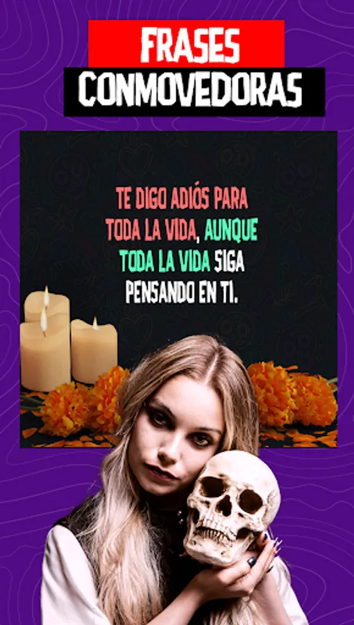 ☠️Day of the Dead an application designed for this special day, where you can find a wide variety of images, wallpapers and phrases of the day of the dead, both funny and moving for those who suffer the loss of a loved one, love, a friend, or a loved one who has departed from this world but is not forgotten for that reason.