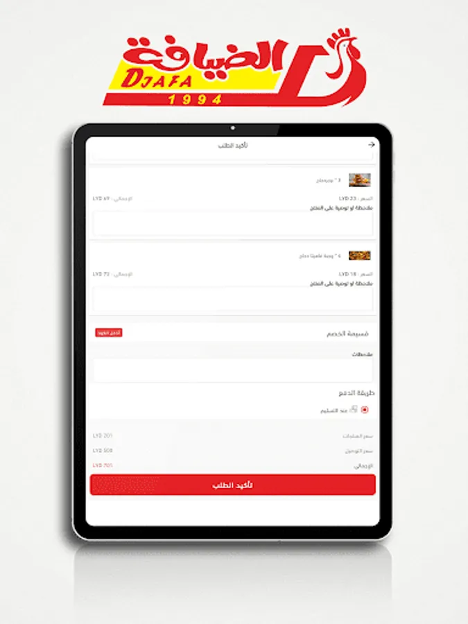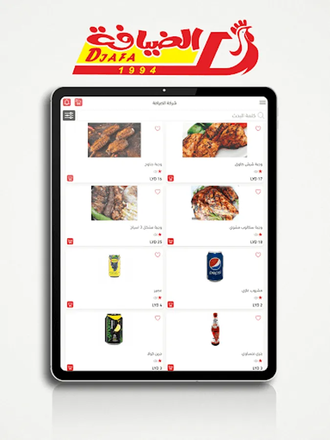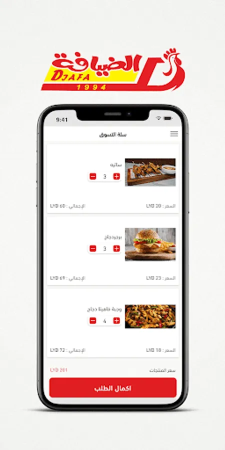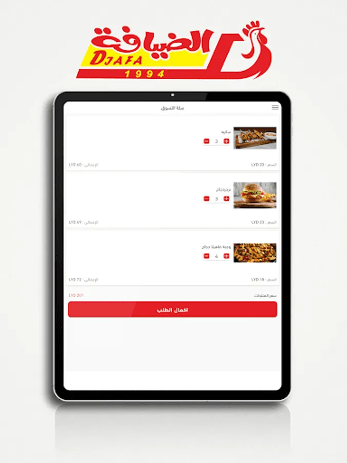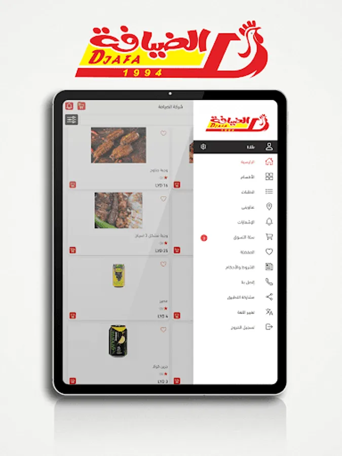 • Browse the different menus with a description of the ingredients of the dishes with the display of pictures and add the dishes to the shopping cart.