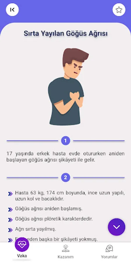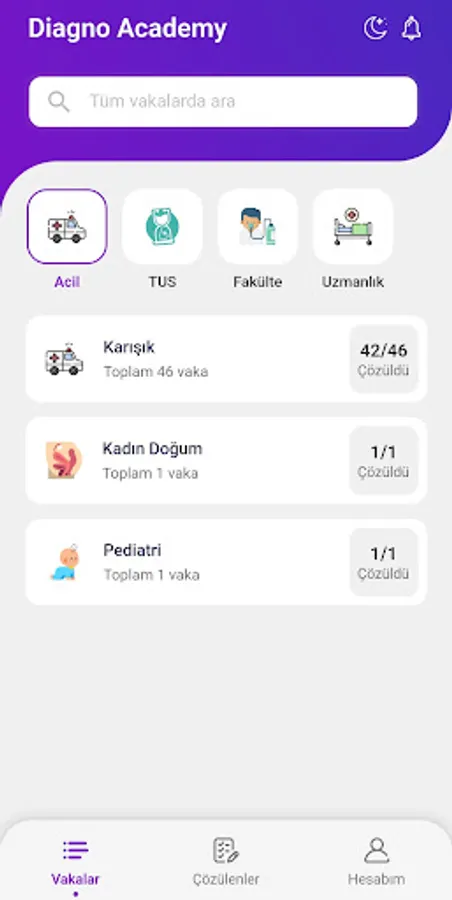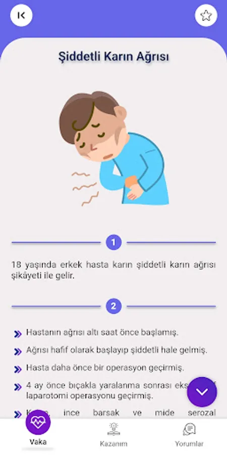 Each one in the application; Emergency, Polyclinic and Faculty cases progress with questions based on the patient's symptoms and provide the ability to make an accurate diagnosis.