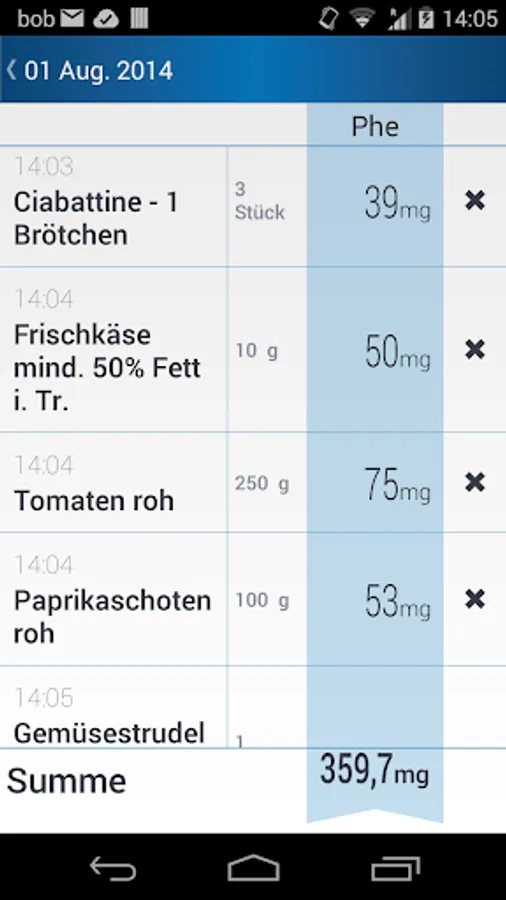 The food logs are stored for each of a calendar day and archived in a calendar overview. You can access these logs retroactively or daily individually using the "Export" function or export a specific time period you by e-mail, and so, for example, Ask your dietician or your supervising physician.