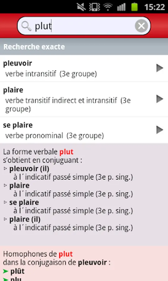 Bescherelle Conjugation is the ability to obtain immediately the complete conjugation of a French verb, with a particular expertise search engine!