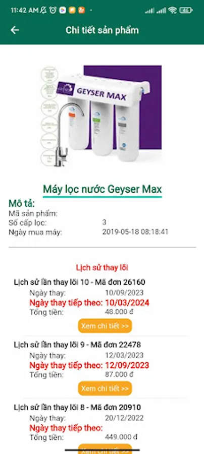 The application monitors the history of changing the water filter core, automatically notifies the periodic reminder reminder, due to replace the core for customers.