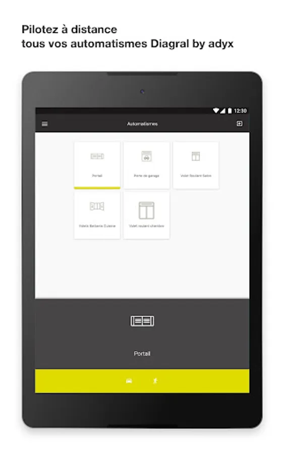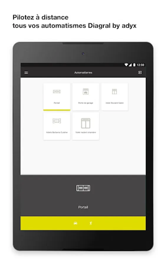 - Control the equipment of the house: alarm system, cameras, automatisms of gates, doors of garage, shutters Diagral by adyx, electrical appliances, lighting