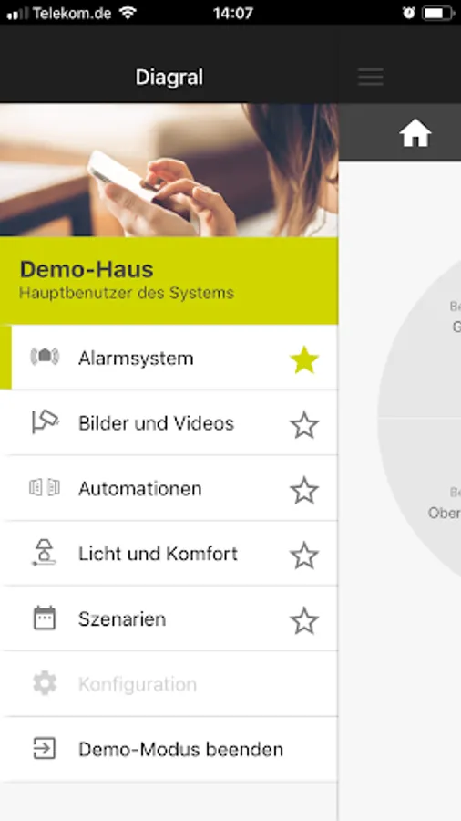 The free e-One app allows you to easily configure your Diagral installation, control your devices (alarm & comfort features), and notify you of break-in or other events.