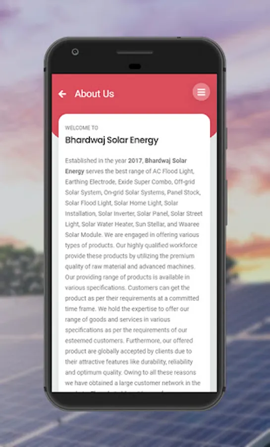 Established in the year 2017, Bhardwaj Solar Energy serves the best range of AC Flood Light, Earthing Electrode, Exide Super Combo, Off-grid Solar System, On-grid Solar Systems, Panel Stock, Solar Flood Light, Solar Home Light, Solar Installation, Solar Inverter, Solar Panel, Solar Street Light, Solar Water Heater, Sun Stellar, and Waaree Solar Module.