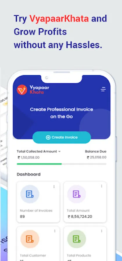 VyapaarKHATA is a simple and powerful solution for managing Invoice, Billing and Accounting. VyapaarKHATA helps to create GST & Non-GST Invoive & Bills, send over email, whatsApp, manage customers contacts,Inventory Management, Purchase Management, ExpenseManagement etc. At VyapaarKHATA, we are dedicated to creating practical solutions for the thriving MSME and SME sector, which comprises 63 million businesses. Our initial innovation, an Website and Android App that facilitates businesses in digitally documenting Invoice, Billing and Accounting transactoon. Our Aims to become best & affordable invoicing software for Indian SMEs. Offering a multitude of valuable features, this app greatly simplifies the business management journey for businesses. By utilizing our invoicing tool, you can significantly reduce the time and energy typically spent on generating GST invoices.