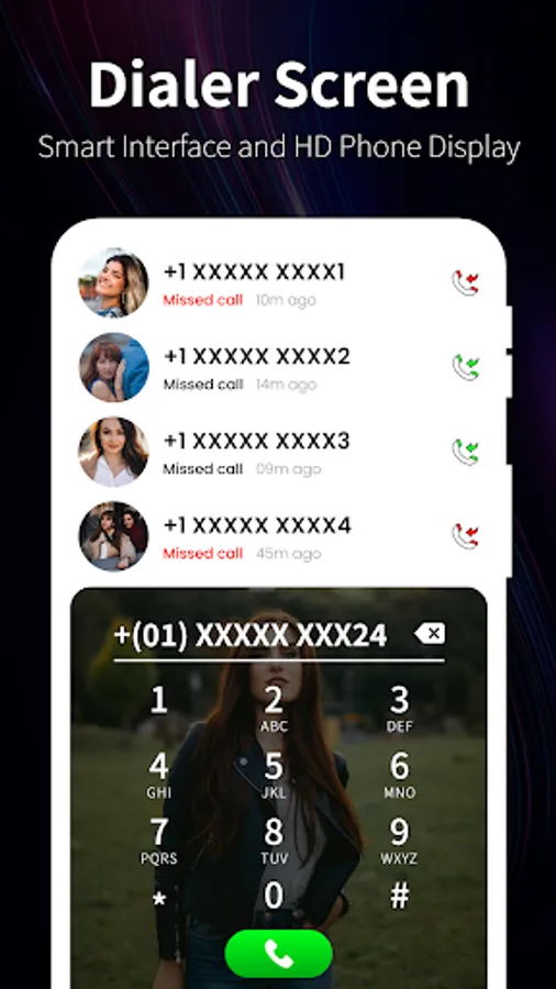 We come with full feature Phone Dialer with your Photo on it. Now it's easy to set Your photo on phone dialer. My photo Phone Dialer comes with many phone dialer background effects & wallpapers. Download photo on caller screen to make your caller screen beautiful and stunning with caller phone dialer themes, effects & backgrounds.
