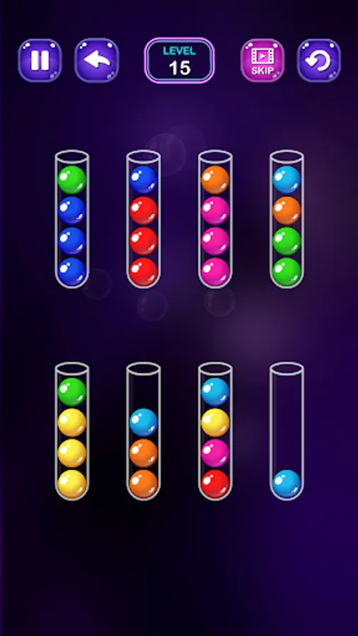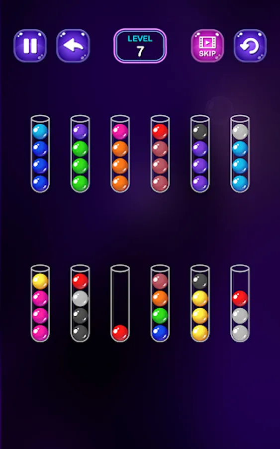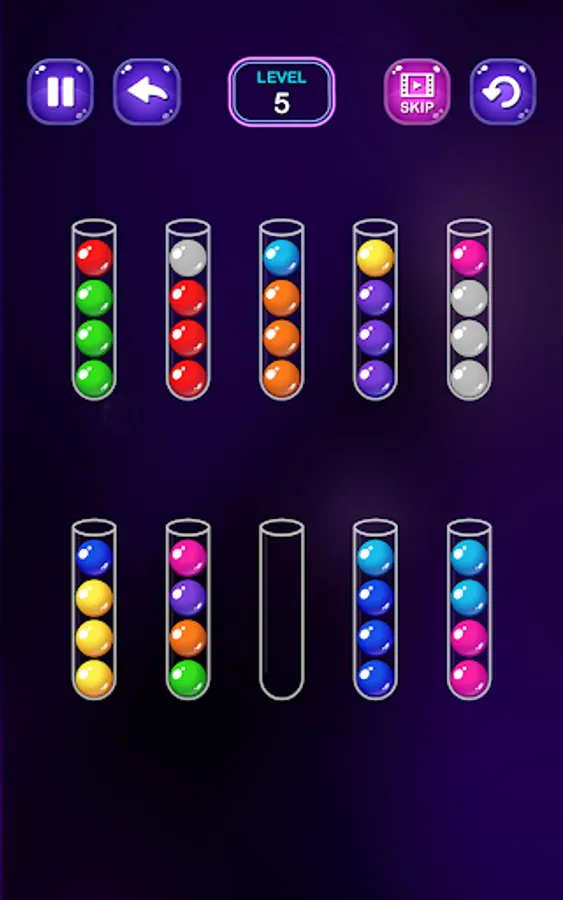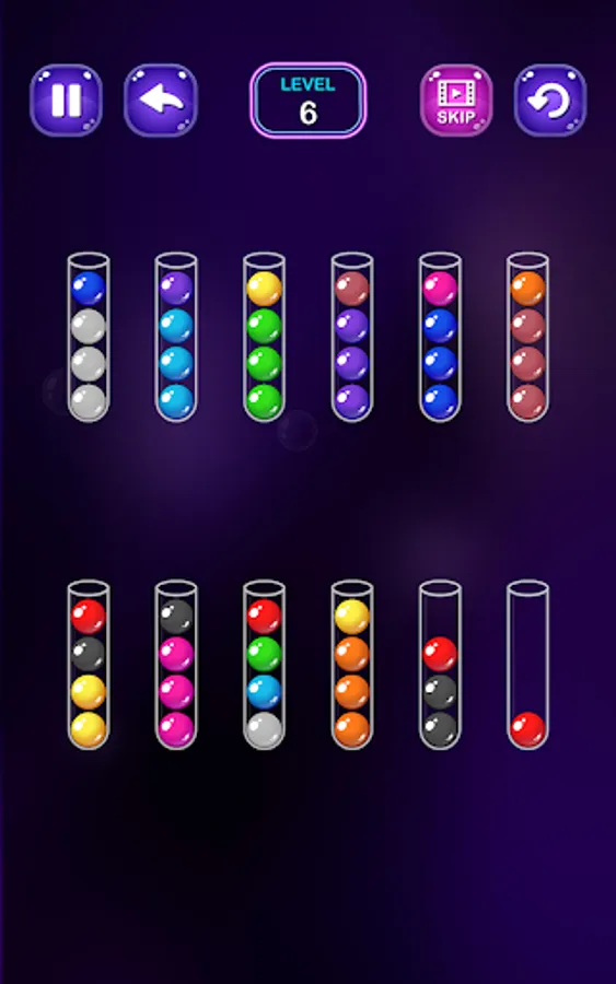 Relaxing and fun ball sorting puzzle game based on color. Sort the multi-colored balls until all balls with the same color are in a separate glass.