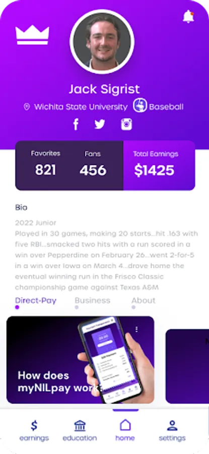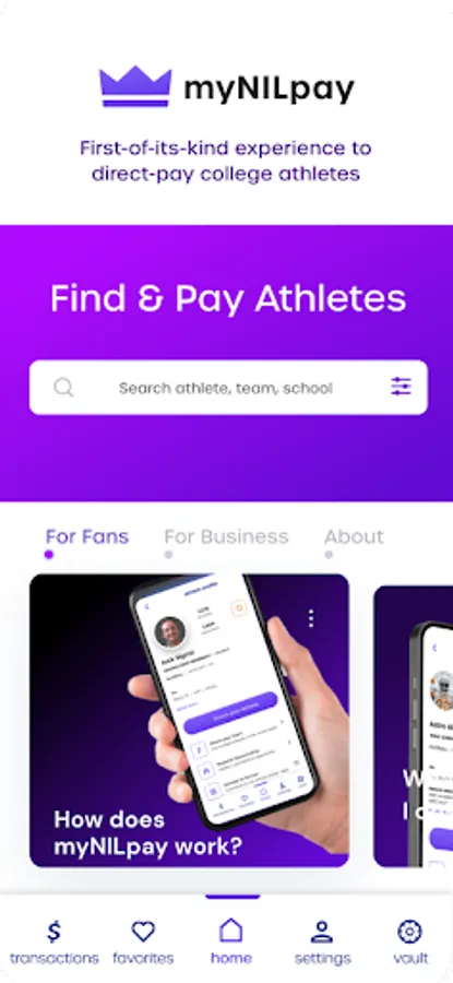 myNILpay is a first-of-its-kind digital platform for NCAA athletes, that allows any fan a method to direct-pay college student-athletes. All 1,000+ schools and 500,000+ NCAA athletes, providing an opportunity for athletes at all levels (D1-D2-D3) and all sports and all genders to monetize their Name.Image. and Likeness (N.I.L.). HOW IT WORKS: The fan selects the athlete to receive funds Email is sent directly to Athlete school email (.edu) The athlete accepts and the funds get deposited directly to their bank account. That’s it. No other action by the athlete is required. FOR STUDENT ATHLETES: N.I.L. monetization has been focused on high-profile players in revenue sports leaving out the 450,000+ student athletes that play all sports at all levels of competition. myNILpay is for all student athletes that have family, friends, alumni, hometown support, social media followers, anyone they can think of, that wants to help support them while they are attending college. myNILpay will provide direct support for tax services, career services, wealth management, NIL education and financial literacy resources to qualified athletes utilizing the app. FOR BUSINESS & CHARITIES: myNILpay offers a centralized hub for businesses and charities to contact student athletes to initiate traditional sponsorship opportunities, reducing the friction of the transaction and providing increased financial value for both the business and the student athlete. COMPLIANCE: myNILpay will keep athletes compliant by keeping track of the transactions and reporting the results monthly to their schools. myNILpay’s approach can protect fans from issues with the facilitation of questionable or illegal NIL transactions by facilitating a legal taxable transaction.