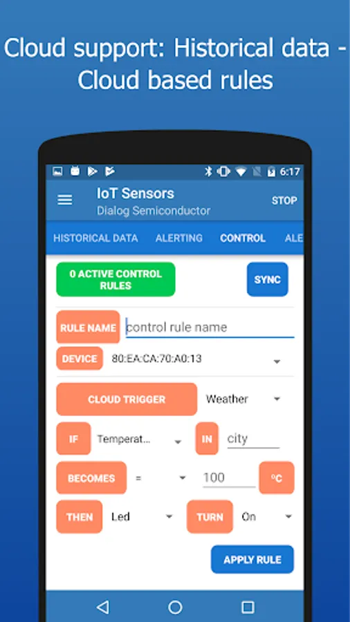 With the DA14585 IoT Multi Sensor Development Kit you can experience the cloud connectivity, with sensor reading, cloud based rules (alerts, actuation) and historical data visualization for the various supported sensors. As part of the cloud connectivity, Amazon Alexa support is integrated into the app, allowing for voice commands to control the Development Kit.