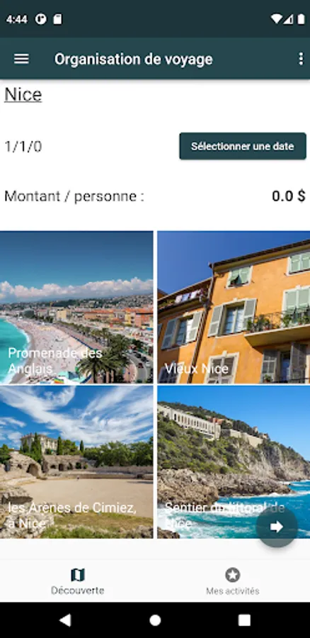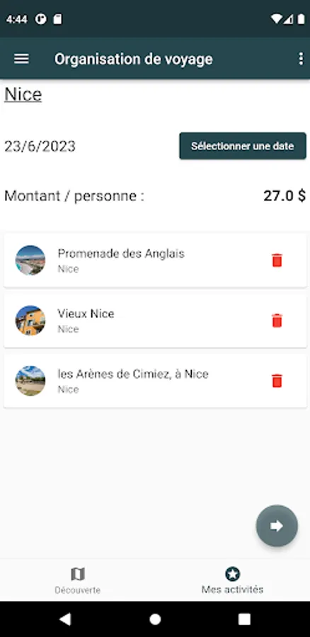 - Dans chaque ville l’utilisateur aura la possibilité de choisir une liste d’activités touristiques, il pourra donc sélectionner les différentes activités qu’il souhaite réaliser et de les sauvegarder pour créer un voyage qu’il souhaite faire.