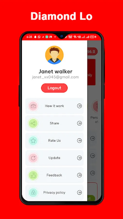 Diamond Lo also have function for invite users where user can invite his/her friends and family members to get Bonus.