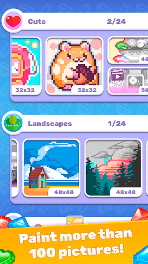 You may have tried diamond art painting in person, and you may have seen wonderful art with diamond sequins in store windows, so why not try it on the gadget we use every day? RIGHT NOW, we're offering you an app with a one-of-a-kind art painting experience. Make your day glow with stunning Gems and Diamonds.
