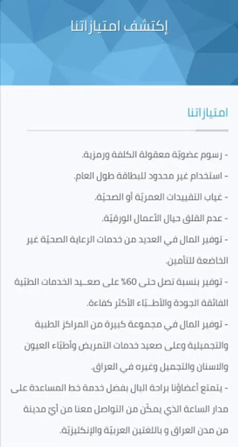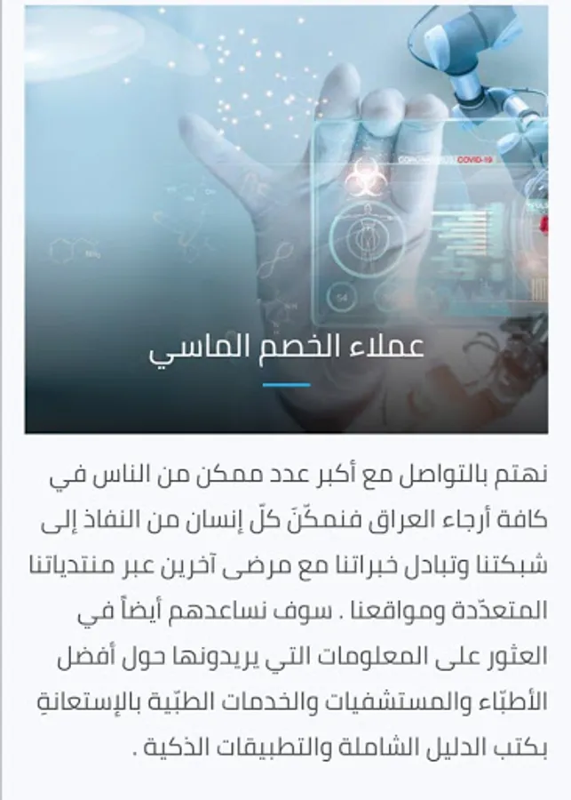 Diamond Discount is a professional company engaged in the field of providing medical services and body health care to public and private companies, trade unions and cooperative societies, charities and individuals in all segments of the society to ensure and provide an excellent level of services to members of these entities and their families. Health care program, which is offered by the Iraqi Diamond Discount health care is one of the most important programs for workers in this field.