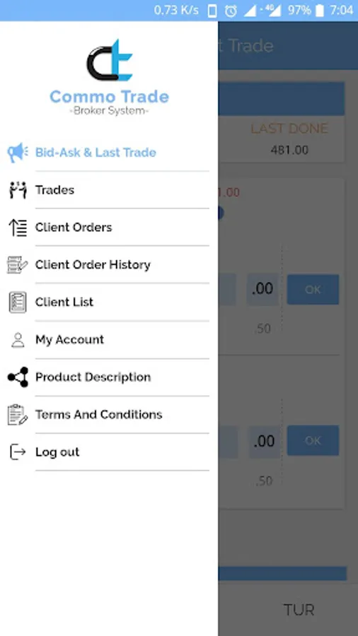 This application allows clients to access market information such as quotes (bid-ask price), last trade price and details of market transactions from brokers. In addition to market information, clients will also be able to submit buy/sell orders to respective brokers through order making function of this app.