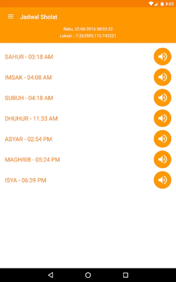 In addition to the obligatory prayers five times a day time, this application also displays the dawn of time and Ruling. The dawn of time counted one hour before dawn and Ruling is 10 minutes before dawn. Both can be made the reminder.