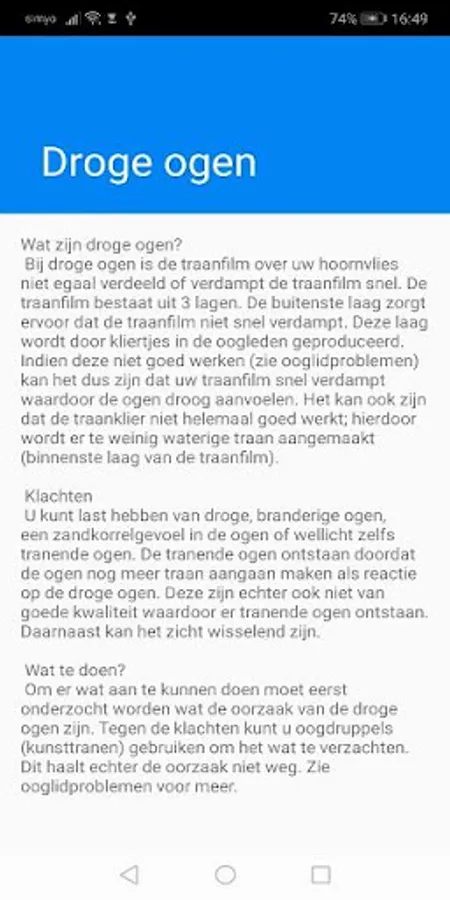 In this app you will find brief information about the most common eye problems. This app is made by two optometry students.
