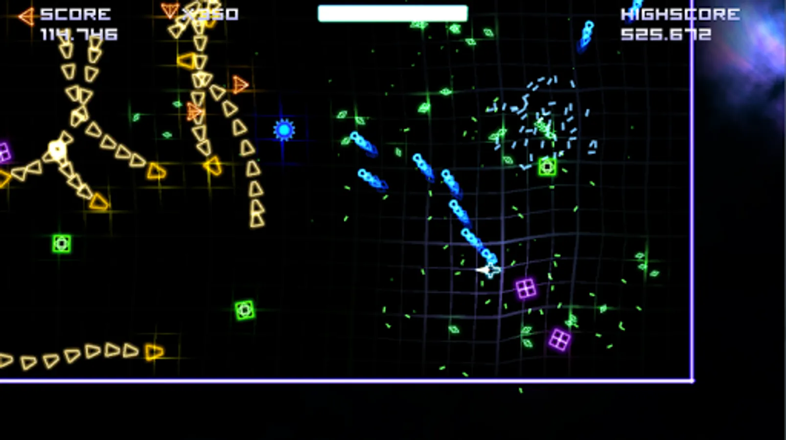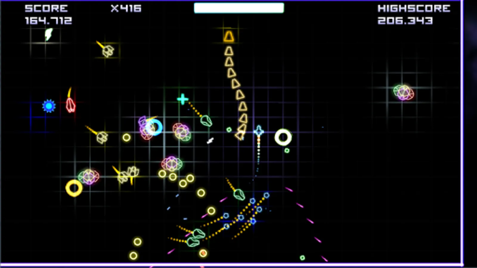 Particle Arcade Shooter is a fast-paced, awesome looking space shoot 'em up game with lots of fantastic particle effects and retro shooter feeling. Destroy your way through endless waves of colorful enemies, collect mighty power ups and become #1 on the global leaderboards.