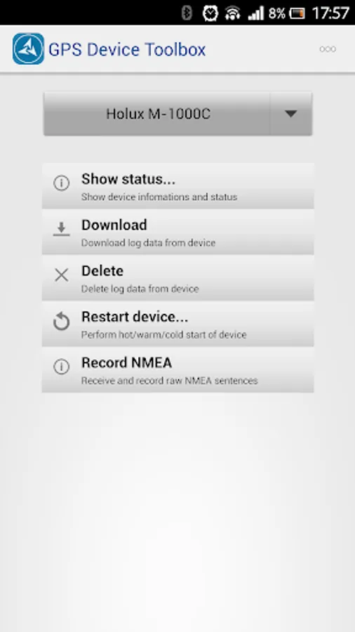 This app allows you to download log data from external GPS Receiver/Logger (like Holux M-241,TranSystem 747 ...) via bluetooth, similar to BT747 and ezTour on PC.