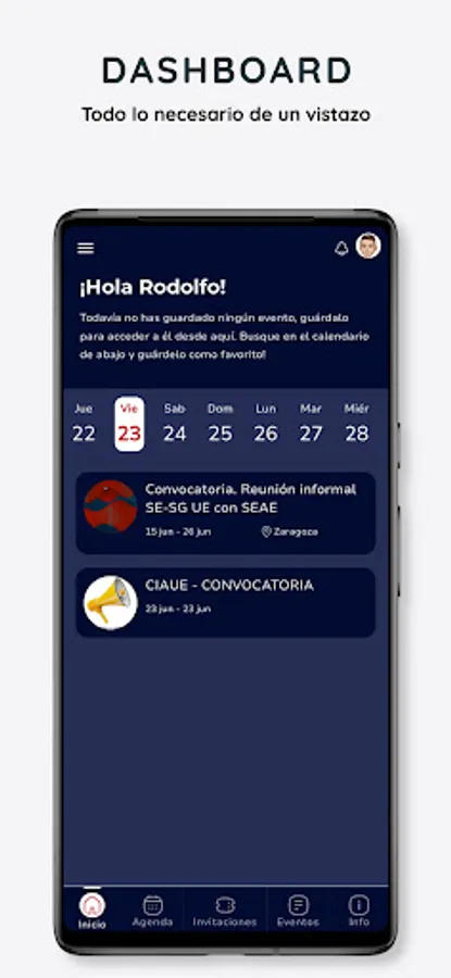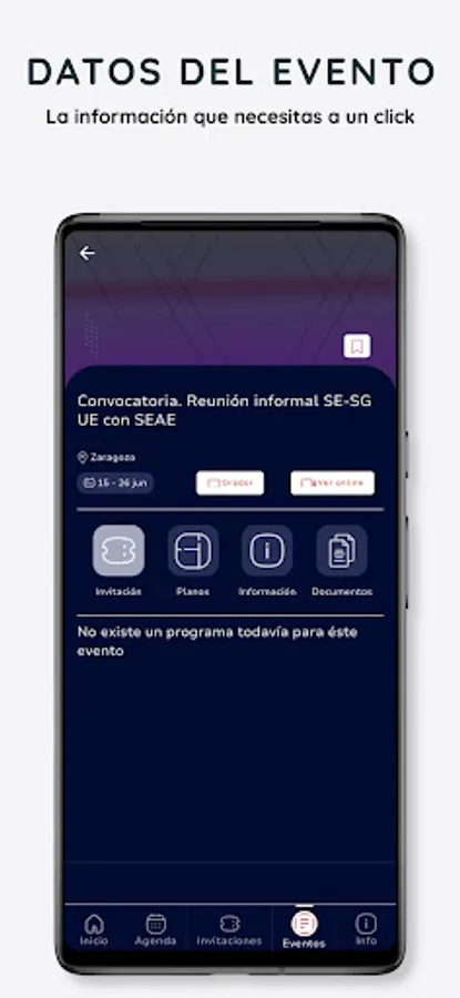 It also links to the STELA tool for event management of the Ministry of Foreign Affairs, European Union and Cooperation on the occasion of the Presidency of Spain of the Council of the EU, so that it allows each guest to an act to receive safely, instantly and personalized, information related to it, even with the possibility of virtual access, in order to offer a quality service and allowing database administrators to minimize management times. The guest will also have access to the calendar and practical information.