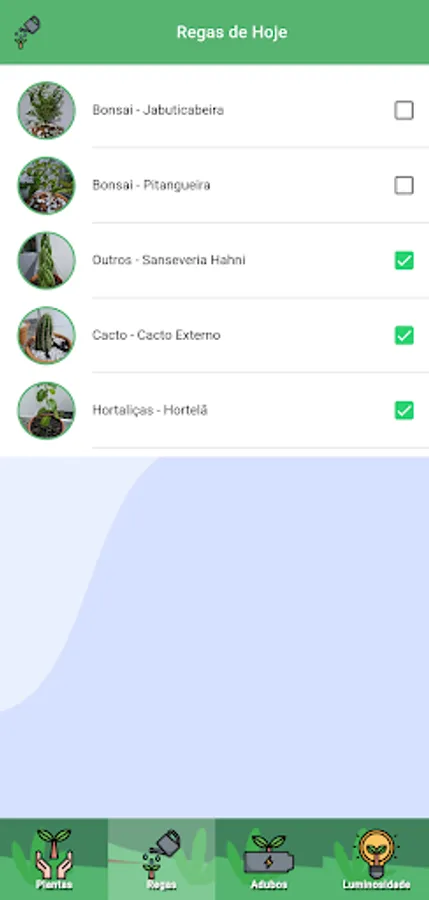 Monitor the watering of your plants, set the date of the last watering and the frequency. Follow the app daily and see which plants you need to water!