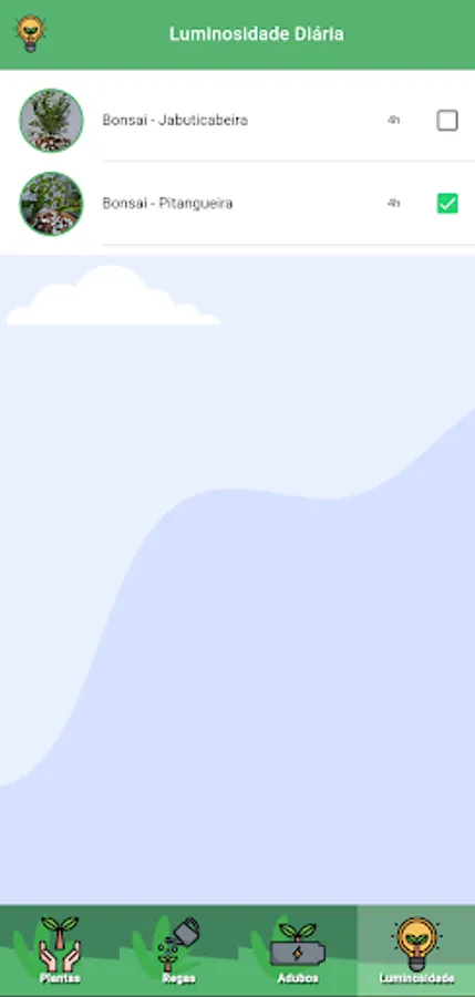 Monitor the sun exposure of your plants, set the date of the last time you received light, the frequency for the next ones and the exposure time. Follow the app daily and see which plants you need to put in the sun.