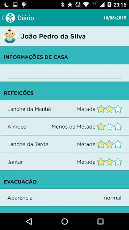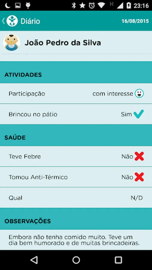 * Daily: track the activities carried out by his son. As was his participation in the games and tasks? He was excited? Quipped with playmates? He made all the meals? Eat enough or little? He did pipi?