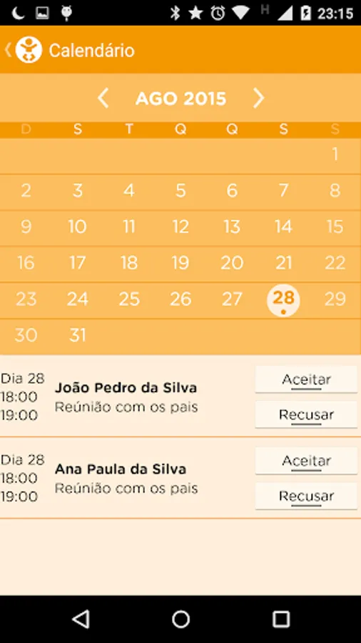 * Calendar: Check the day and the schedule of activities of the academy. Be warned once you receive a new invitation. Tell your participation to teachers accepting or rejecting invitations.